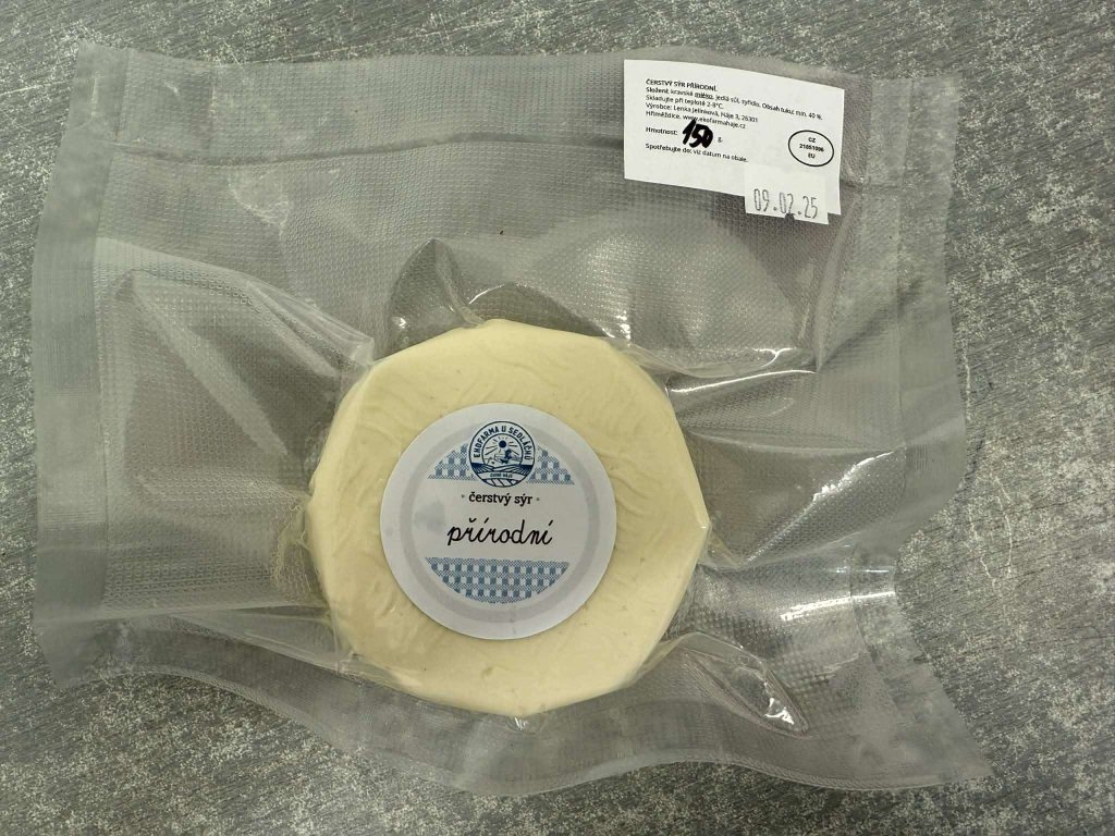 PLNOTUČNÝ ČERSTVÝ MĚKKÝ SÝR. Složení: kravské mléko, jedlá sůl, syřidlo. Obsah tuku: min. 40 %. Skladujte při teplotě 2-8°C. Výrobce: Lenka Jelínková, Háje 3, 26301 Hřiměždice. Spotřebujte do: viz datum na obale.